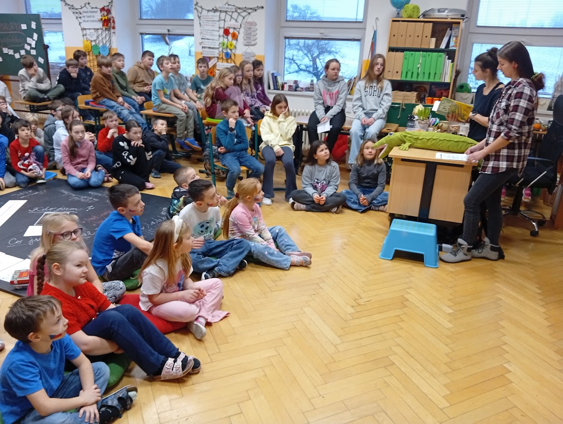 V úterý 10.2. do Horňáku zavítaly knihovnice Tína a Péťa a představily nám knihu Roalda Dahla Velikanánský krokodýl. V jejich podání to byl skvělý zážitek. Děkujeme!