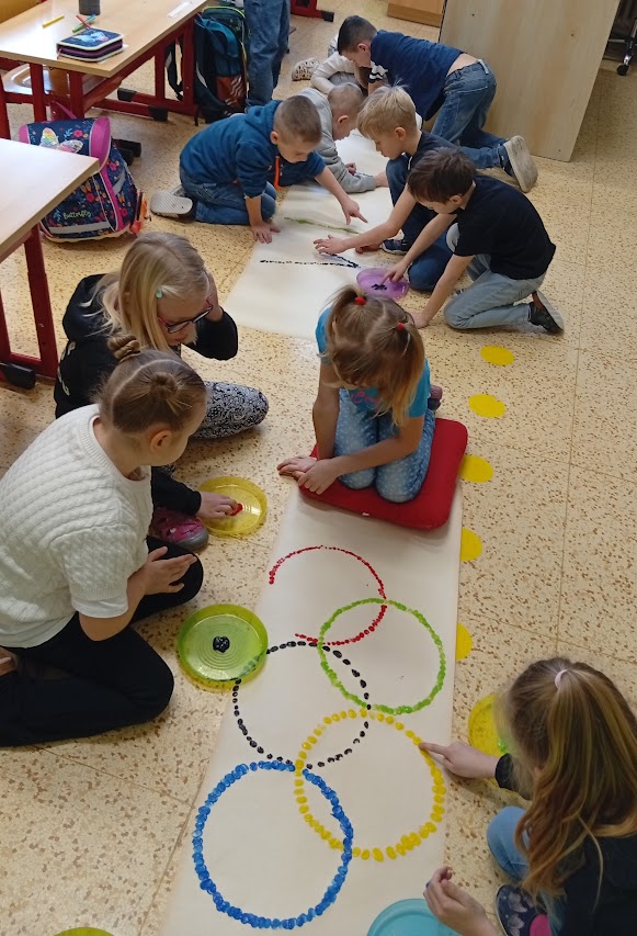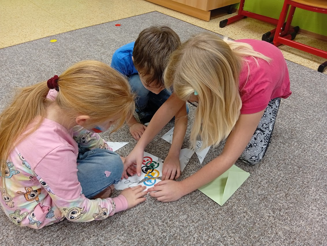 Úterek 10.2. jsme v první třídě v Horňáku prožili Olympiádou. Nejdříve jsme shlédli zahájení skutečné olympiády v Miláně. Pak jsme se seznámili s místem konání olympiády, s maskoty a ukázali si letošní medailisty Zuzku a Metoděje. Sami jsme tvořili slova z písmen OLYMPIÁDA a opisovali slova pod olympijskými kruhy. Náročný den jsme zakončili disciplínami - hokej, biatlon, boby, curling, slalom a rychlobruslení