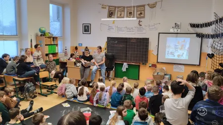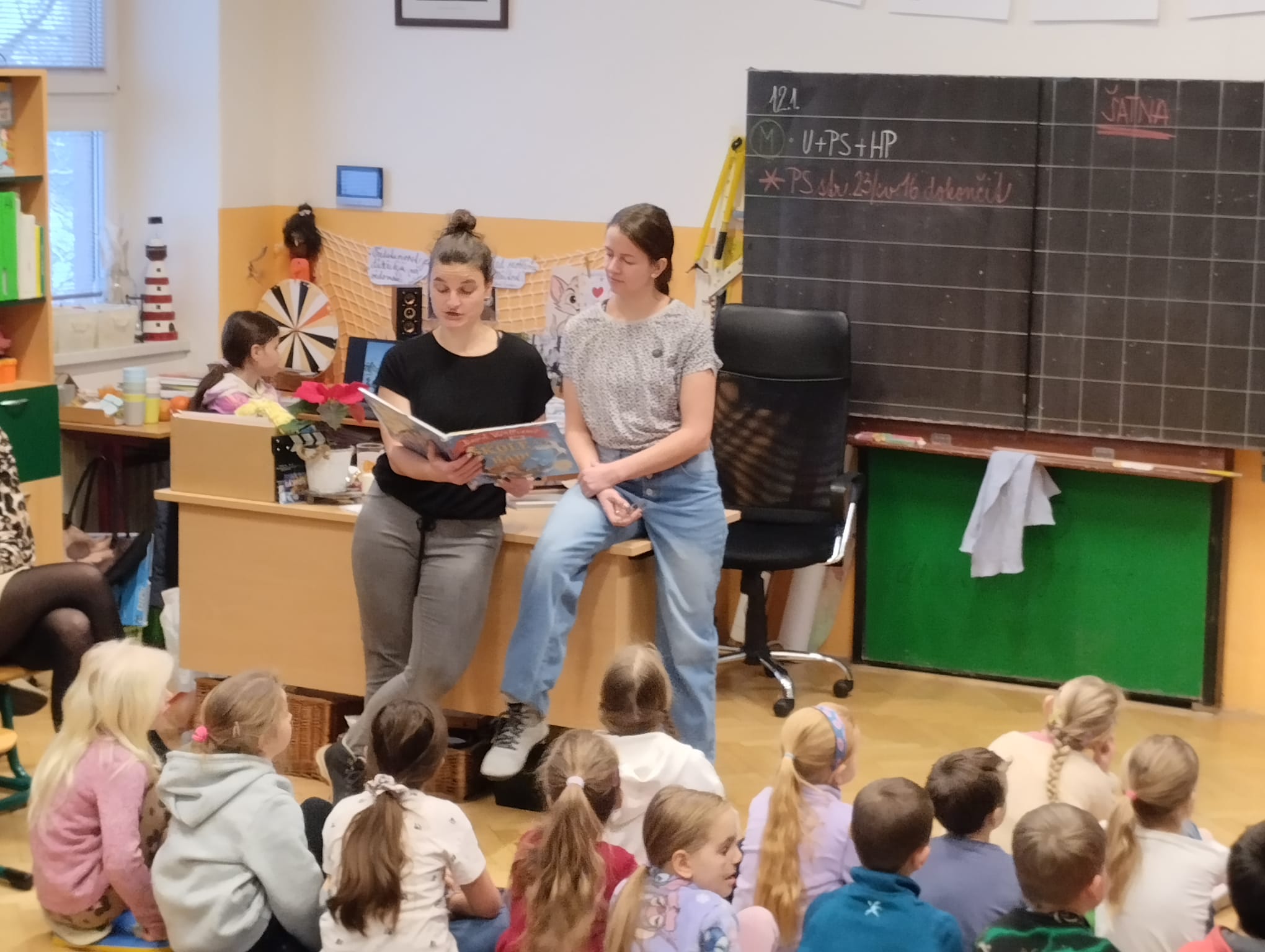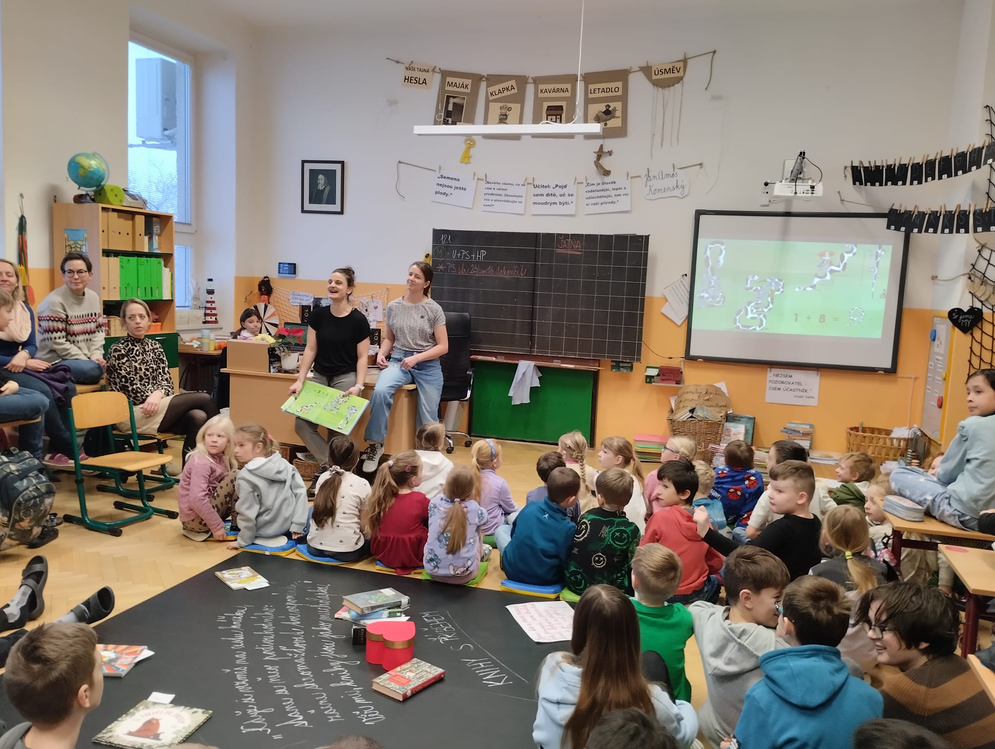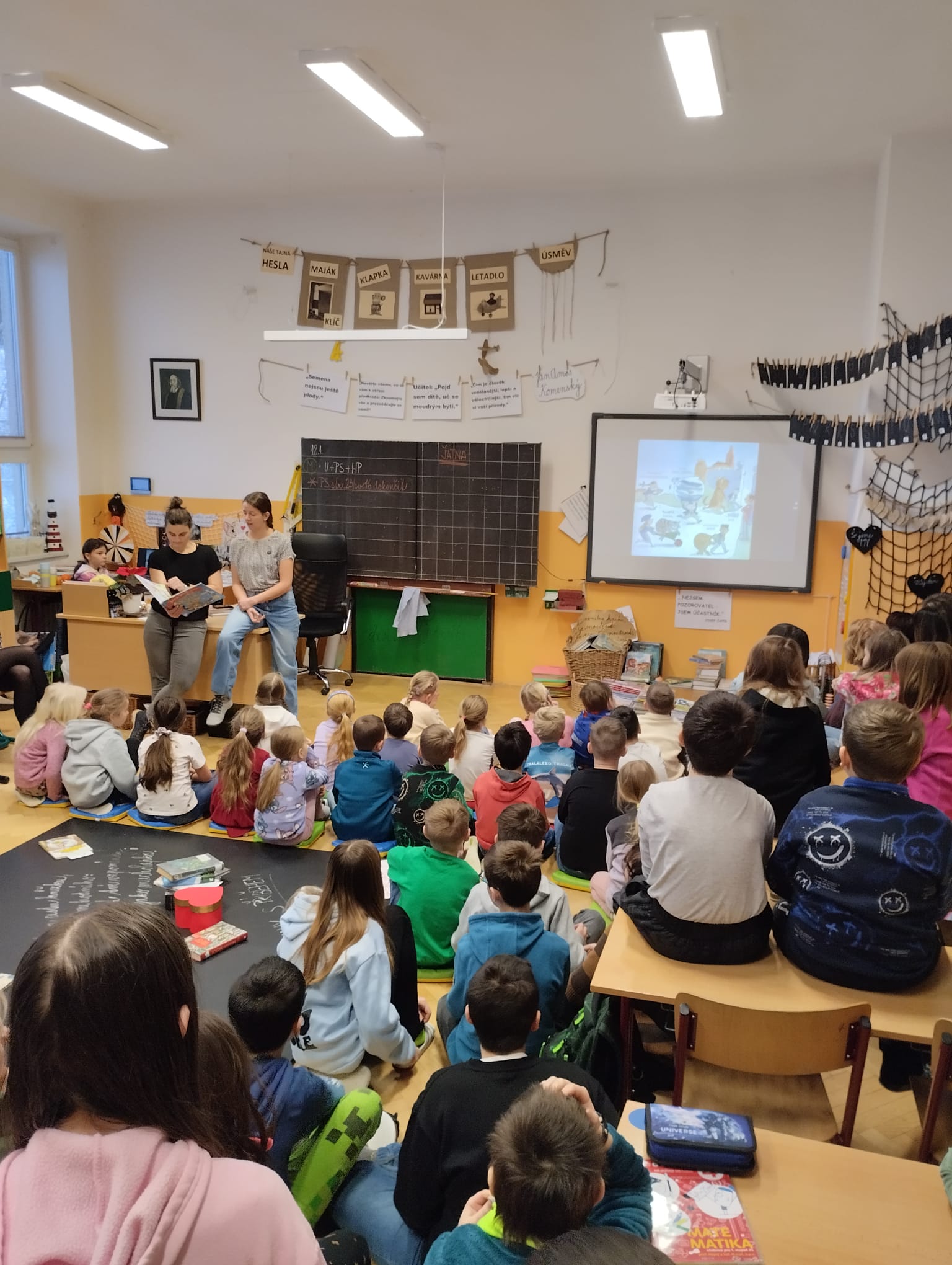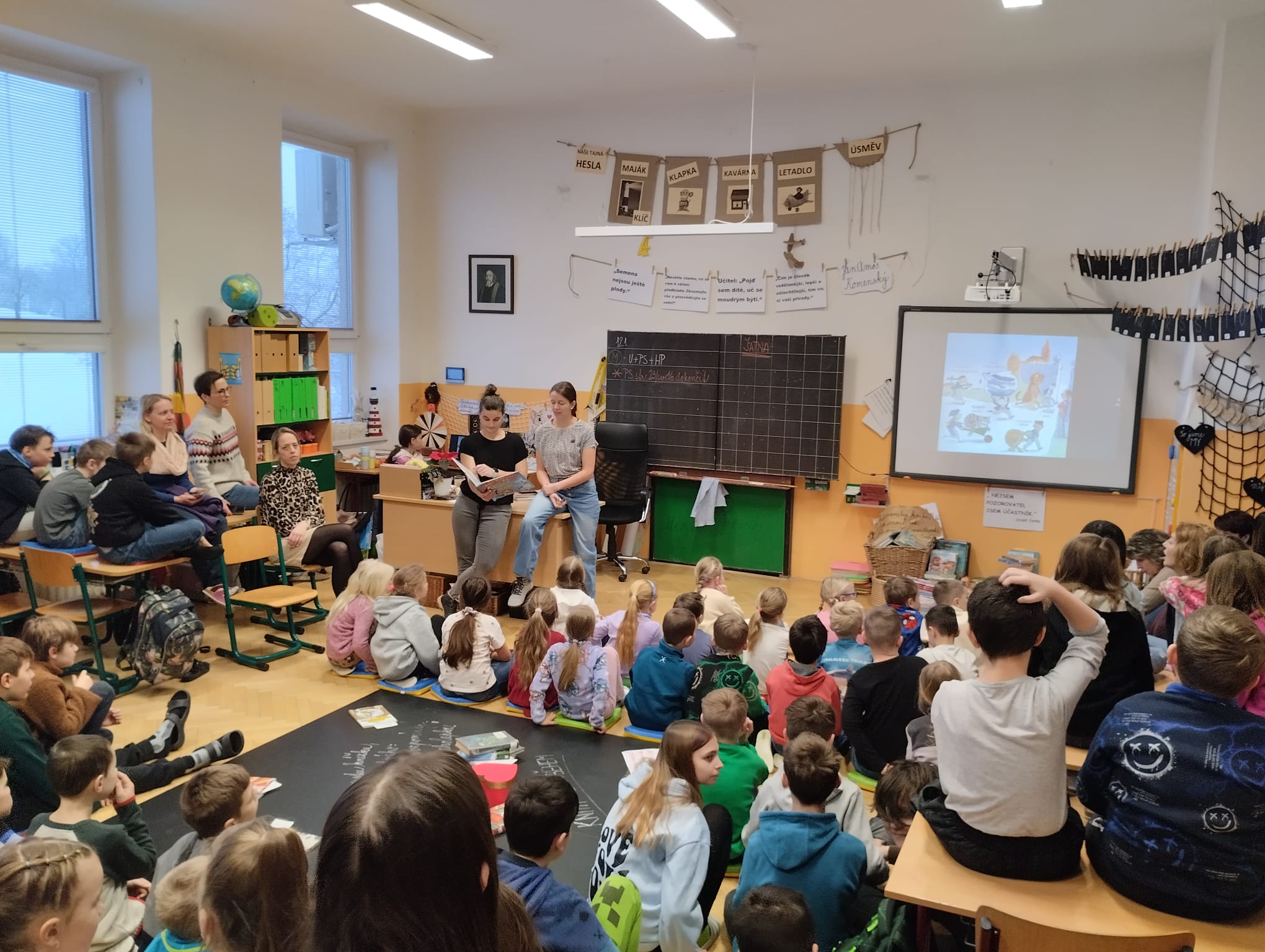 První setkání v novém roce s knihovnicemi Tínou a Péťou bylo vtipné a zajímavé. Přečetli nám knihu Davida Walliamse - V naší škole je had. Příběh o dívce Mirandě, která se nebojí být jiná. Když mají děti ve škole přinést svého domácího mazlíčka, přichází s opravdu výjimečným kamarádem - krajtou Penelopou. Ale paní ředitelka Nafučená je proti myšlence mít hada ve škole a snaží se Penelopu zakázat. Zanedlouho však zjistí, že tento neobvyklý mazlíček může být mnohem víc, než si kdo dokázal představit.