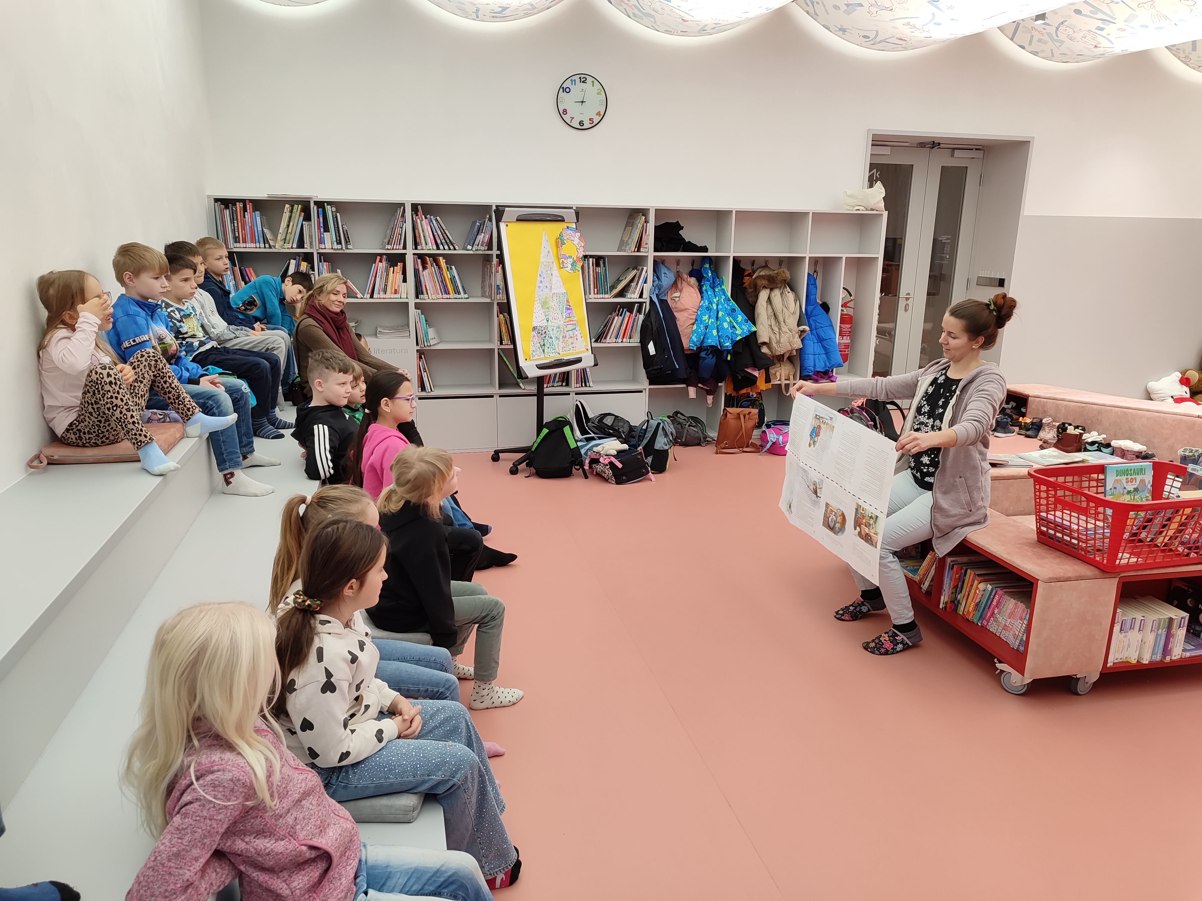 Druháci z Horního Kostelce byli dnes obhlédnout znovuotevřenou knihovnu Břetislava Kafky. Bylo to jejich první setkání v rámci projektu "Jak rozečíst druháky" na téma: KNIHA. Žákům se v nové knihovně moc líbilo.
