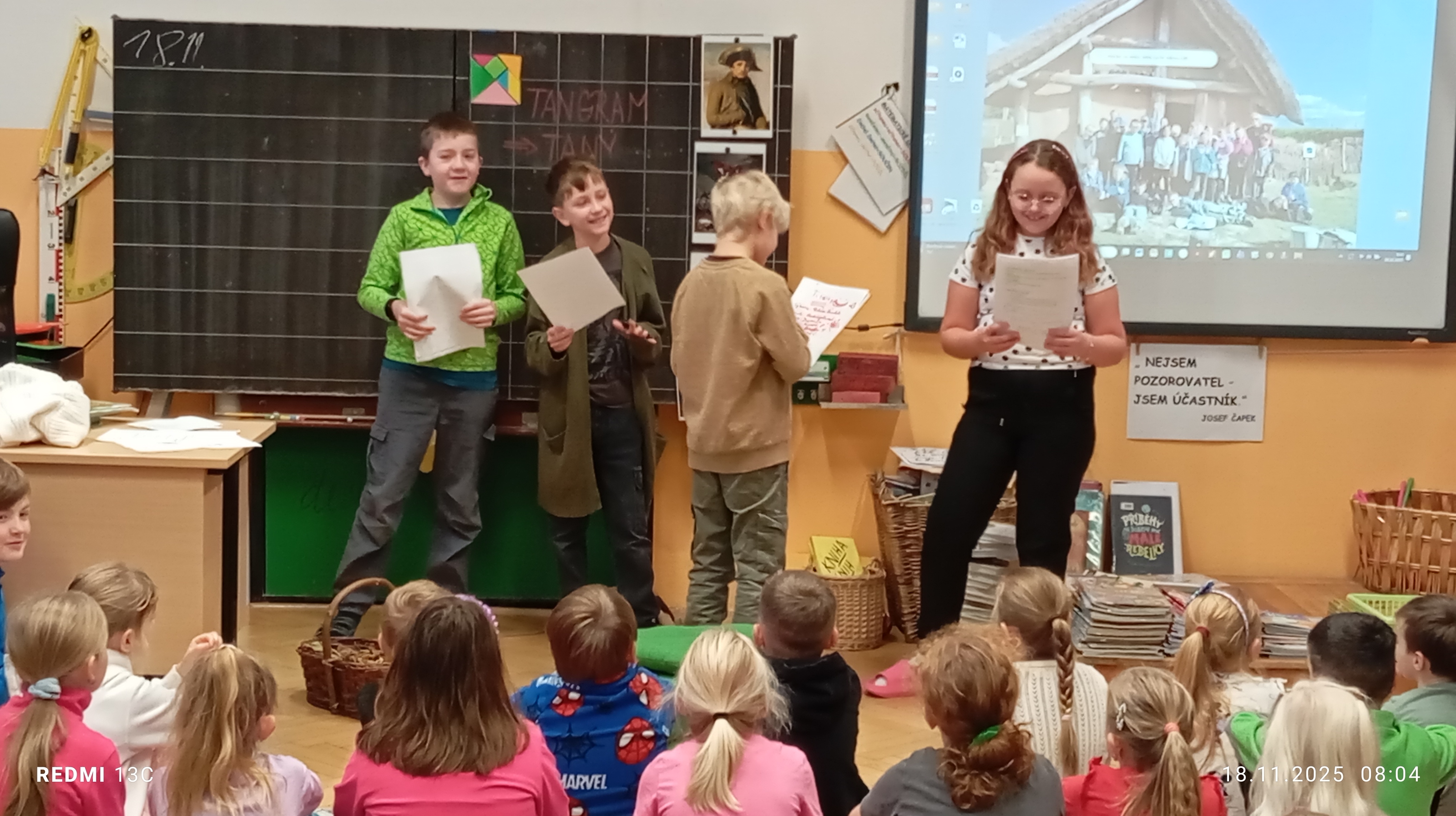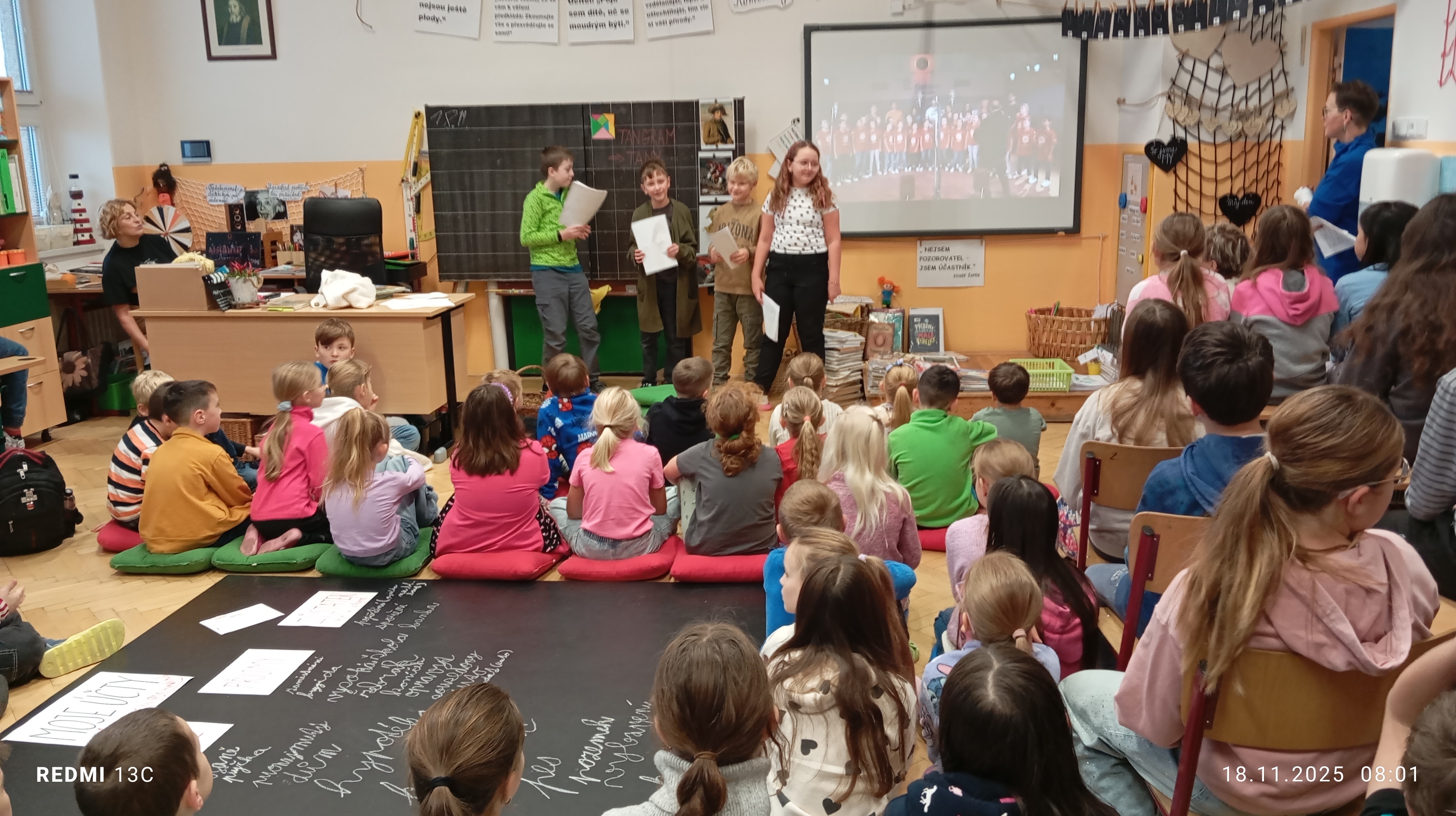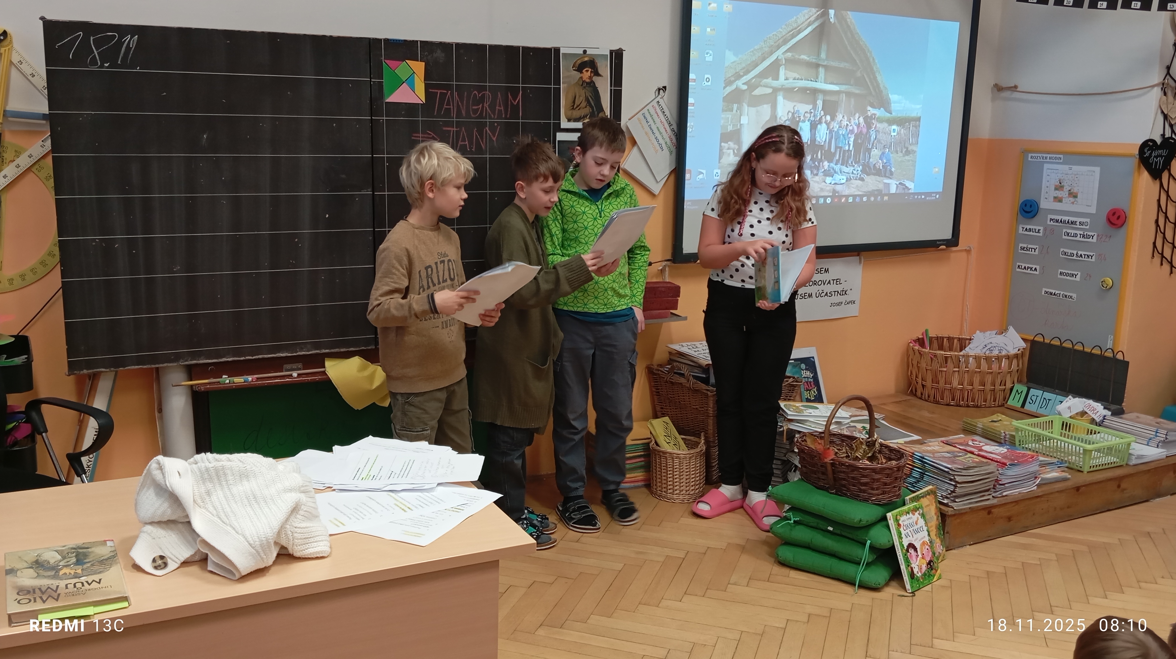 V úterý 18.11. si pro žáky skupina Koumáků připravila program na Horňák čte dětem. Představili dětem knížku sehranou scénkou. Připravili pro ně i  motivační otázky ke knize.