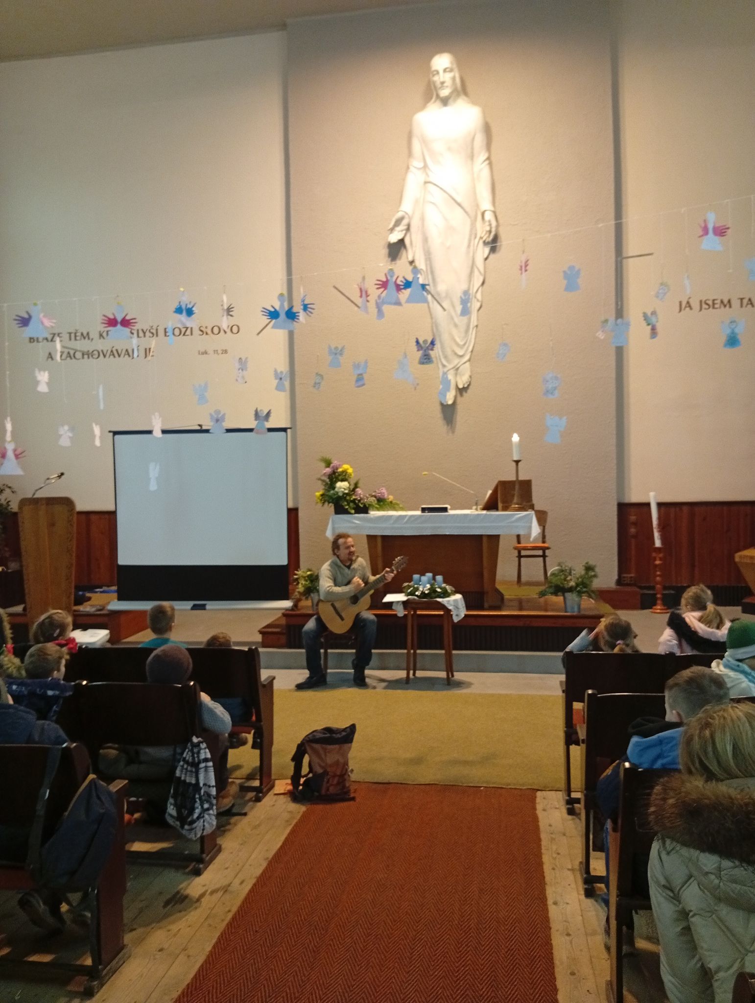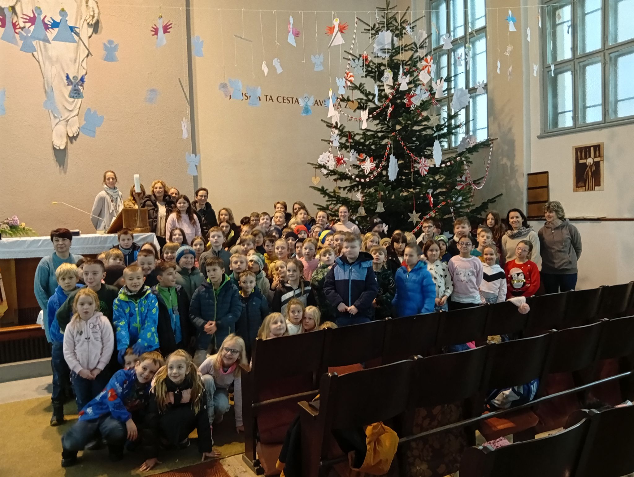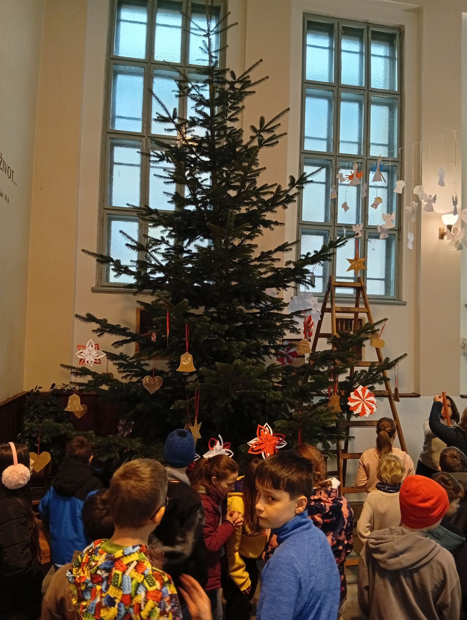 Žáci ze školy v Horňáku dnes tradičně navštívili husitský kostel. Vyrobené ozdoby pověsili na vánoční strom. Andělíčky, na které děti napsaly svá přání pro všechny lidi na planetě jsme připevnili na šňůru mezi okna. Zazpívali jsme si koledy a vyslechli si od pana faráře Smetany příběh o narození Ježíška. Při rozloučení děti dostaly rolničku pro štěstí.
