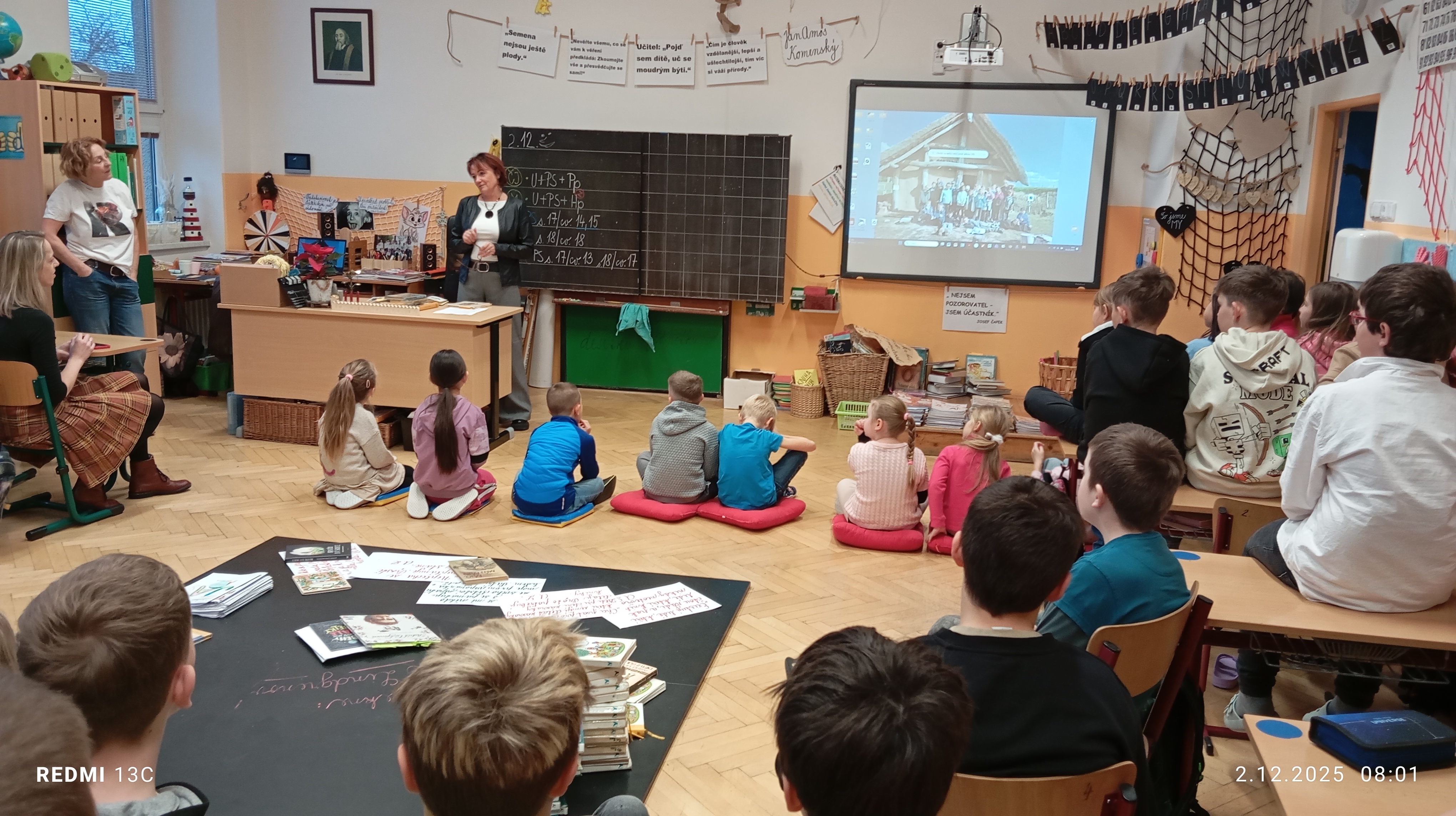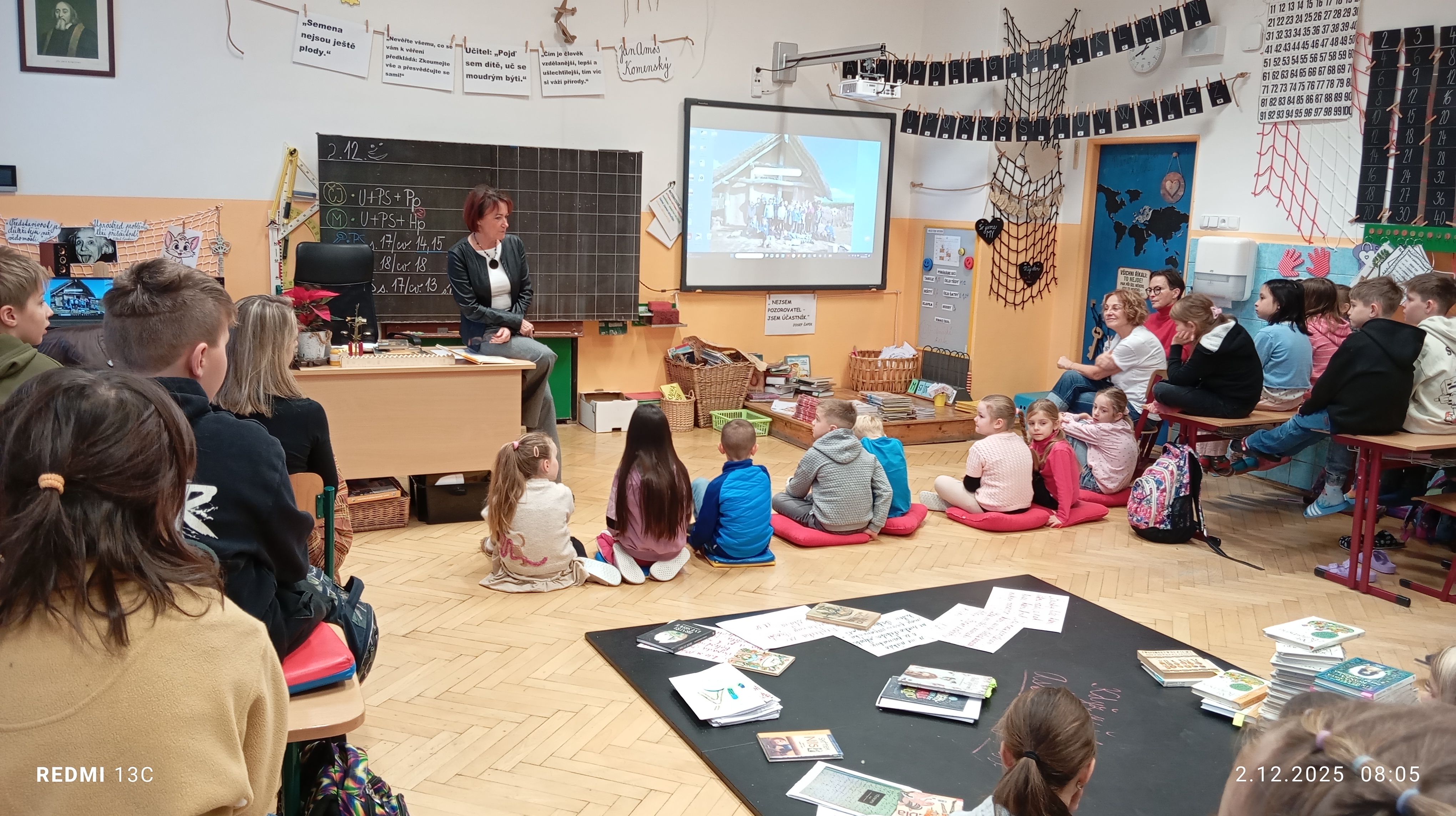 V úterý za námi do Horňáku přijela paní zástupkyně Líba Renfusová.Seznámila děti s oblíbenými knížkami svého dětství. Přečetla jim úryvky z Pohádky i z Rychlých Šípů.