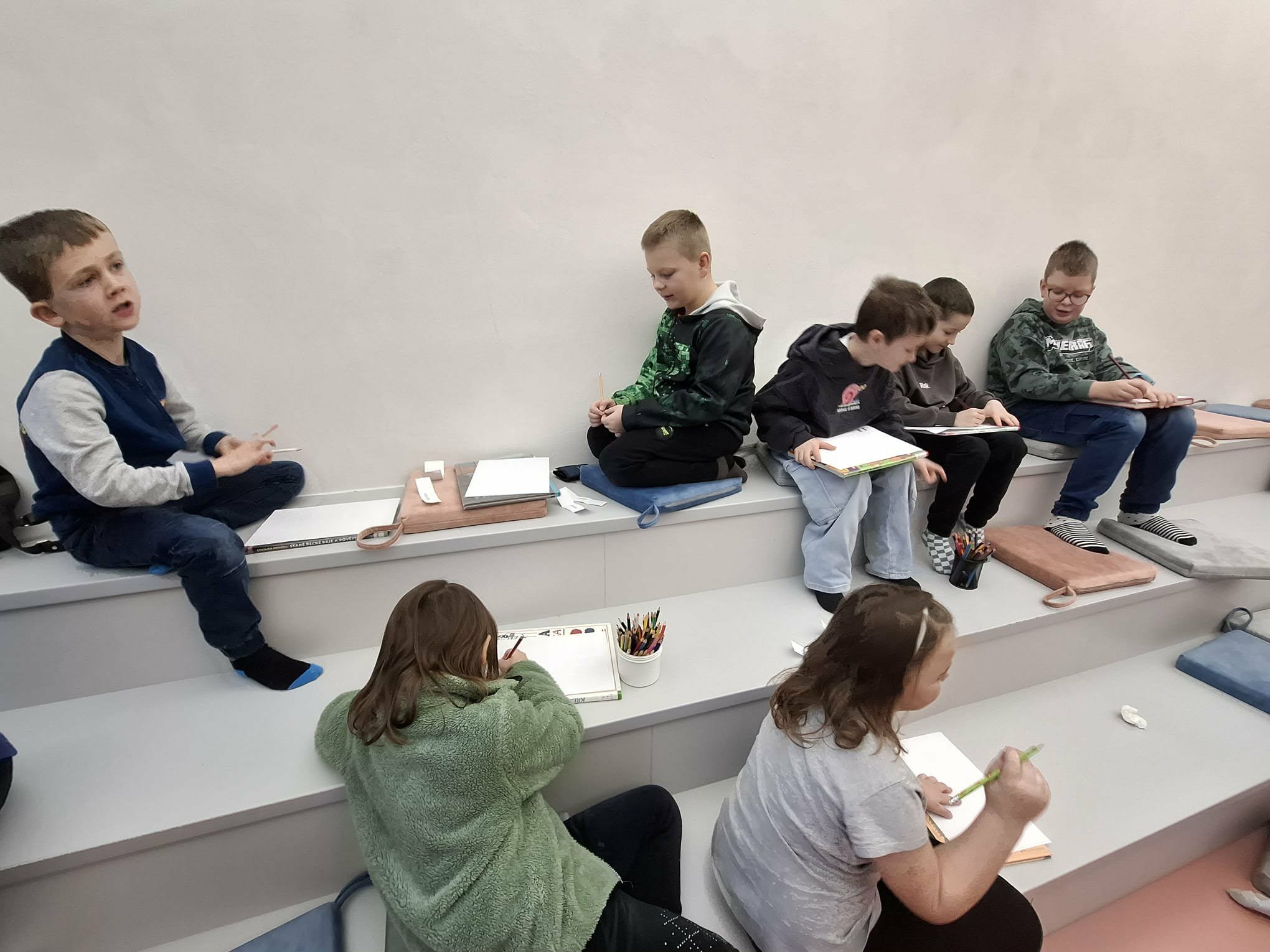 Druháci navštívili knihovnu v rámci projektu 'Jak rozečíst druháky'. Společně se ponořili do světa knih, kde se věnovali tématu prostředí a hlavní postavě v příběhu. Děti přemýšlely o tom, kde se děj odehrává, kdo v něm vystupuje a jak prostředí ovlivňuje celý příběh. Na závěr si samy vyzkoušely roli ilustrátorů a vytvořily vlastní obrázky inspirované četbou.