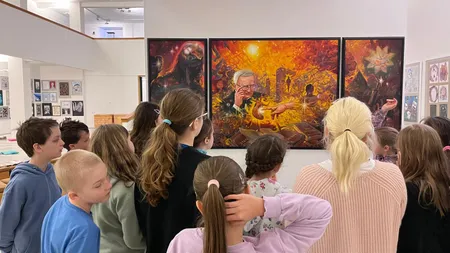 Třída 4. B navštívila Galerii výtvarného umění v Náchodě, kde se zúčastnila výstavy a výtvarného programu „Na hlavu“.