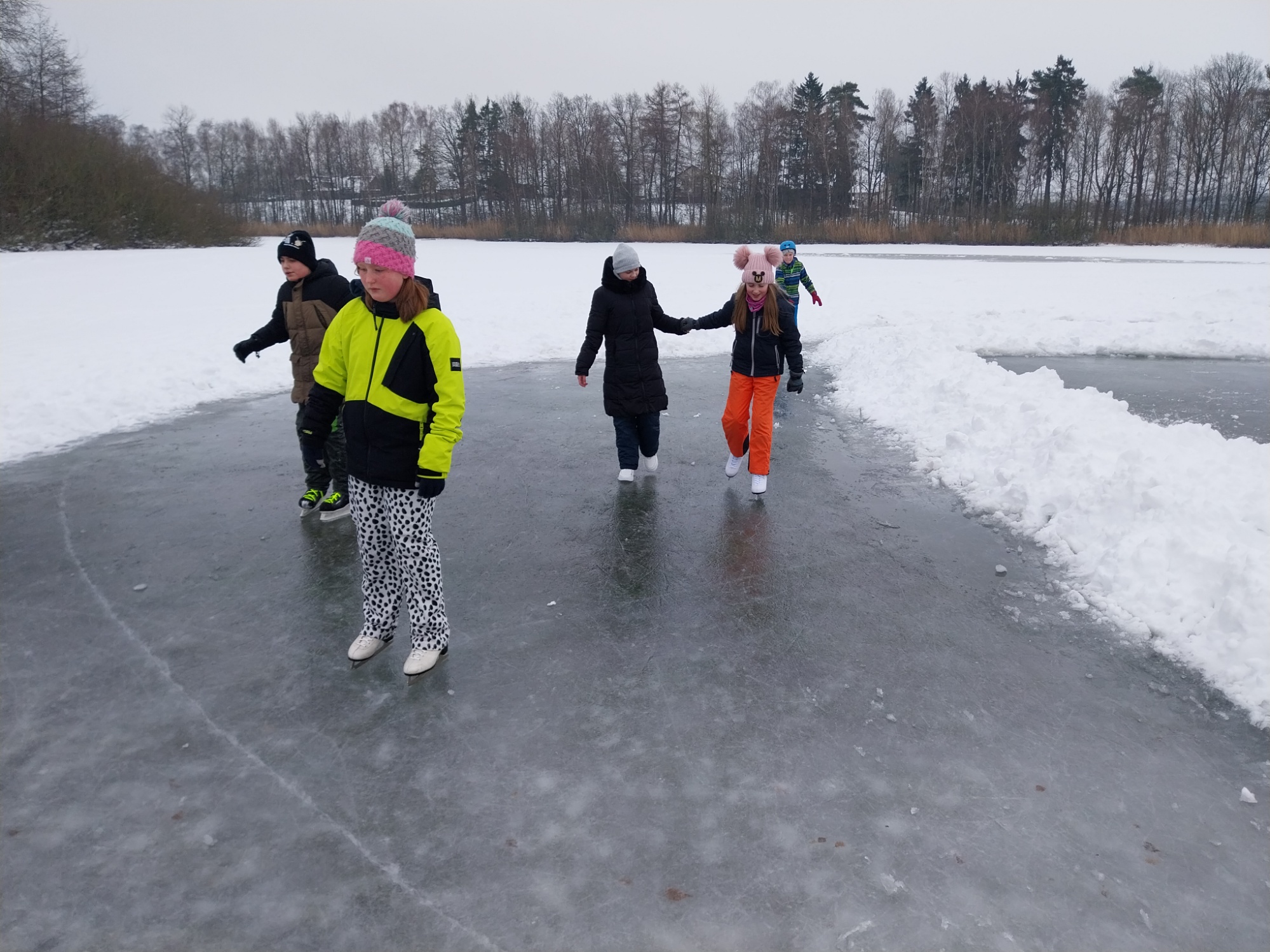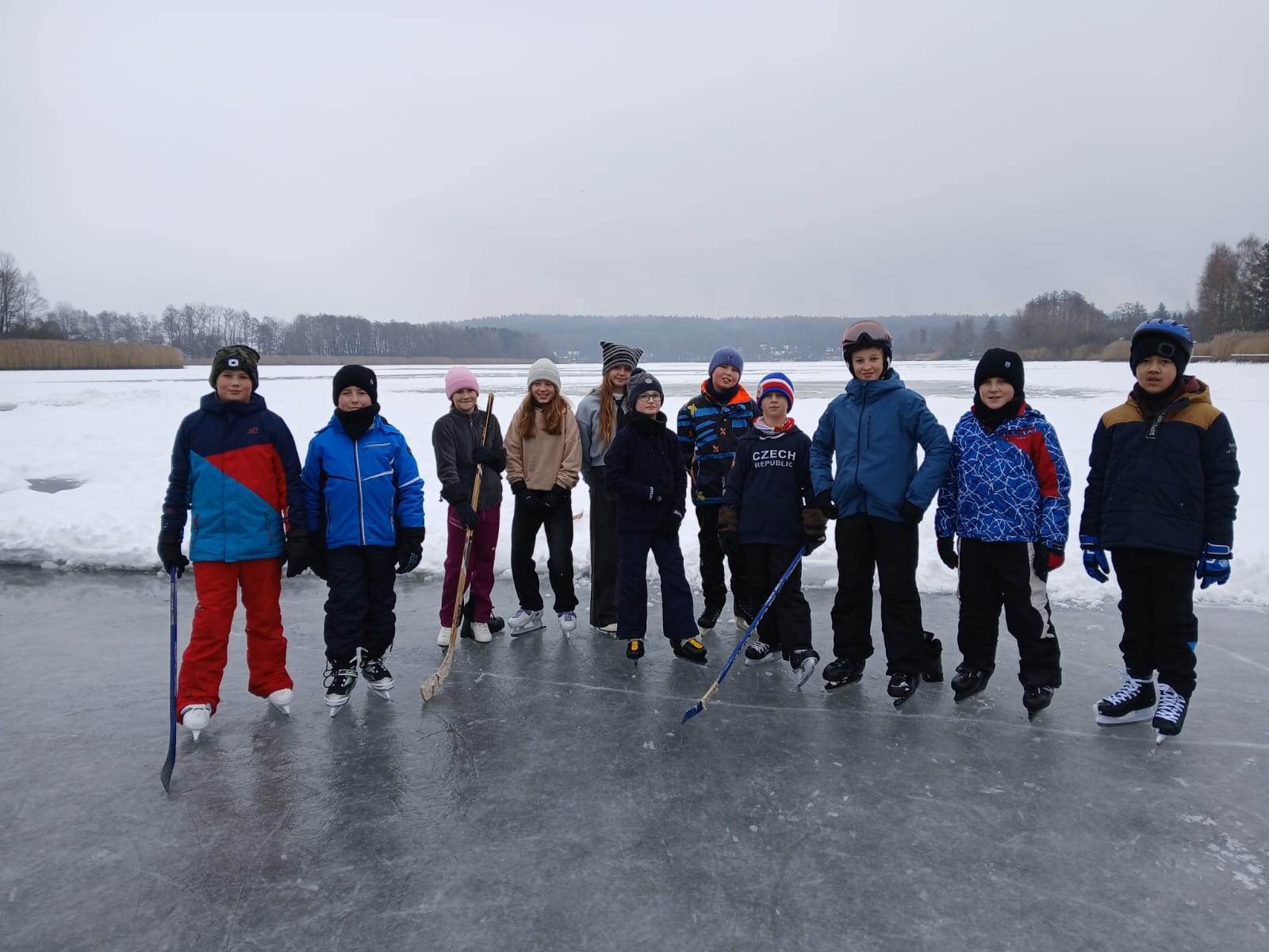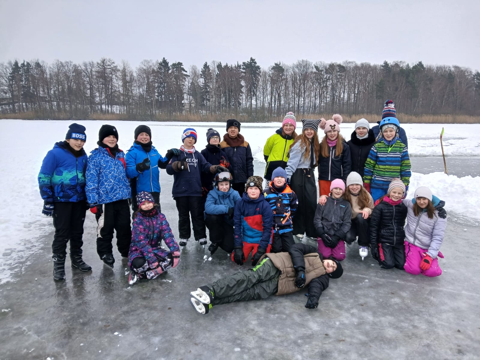 Třída 5.A byla ve středu bruslit na Špince. Počasí ještě dopoledne přálo, nebyl krutý mráz, ani obleva. Děti se zapojily do hokeje a soutěží. Nováčci na bruslích zdárně zvládli rozbruslení. Velké poděkování patří panu Hanušovi, který zajistil zázemí, ohlídal tloušťku ledu a vedl hokejového utkání.