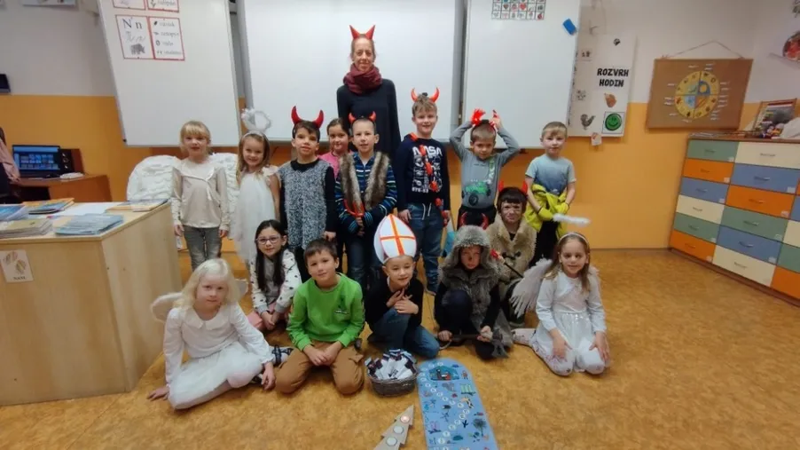 Ve svátek svatého Mikuláše 1. - 3. třída přišla v převlečení za Mikuláše , čerty i anděly....a učili se tak trochu jinak :-)