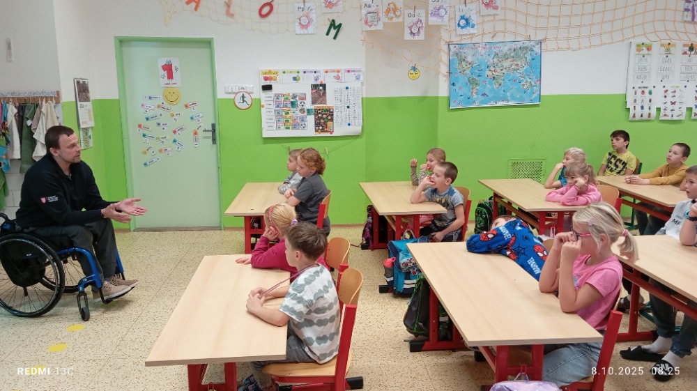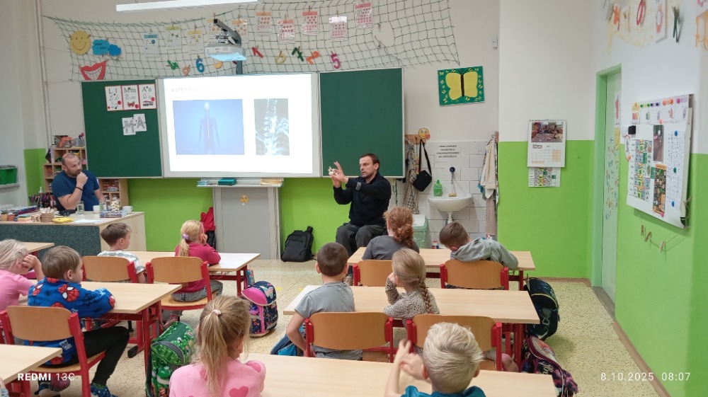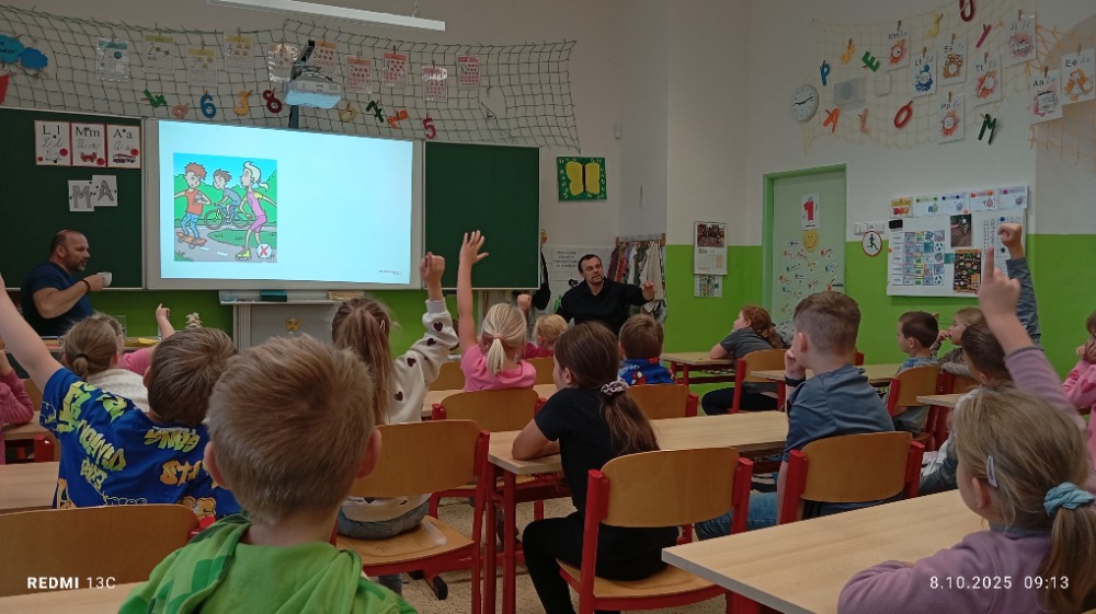 Ve středu 8.10.ve škole v Horňáku proběhla edukační přednáška v rámci projektu Všeobecné zdravotní pojišťovny České republiky VZPoura úrazům. Projekt je zaměřený na prevenci úrazů a nehod dětí a mladistvých. Přednášejícími byli dva ambasadoři Jenda a Zbyněk, kteří se po úrazu museli vyrovnat s doživotními následky. Sdíleli s dětmi svůj osobní příběh. V otevřené diskusi přiblížili problematiku úrazů a upozornili na rizikové situace, které mohou úraz způsobit. Děti zaujatě naslouchali a Jenda a Zbyněk jim zodpověděli spoustu všetečných dotazů. DĚKUJEME za velmi přínosné setkání J