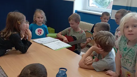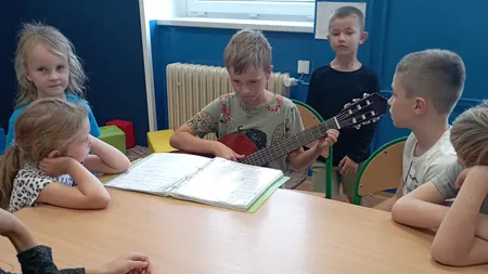 Odpolední aktivity ve školní družině. Ondra spolužáků zahrál na kytaru.