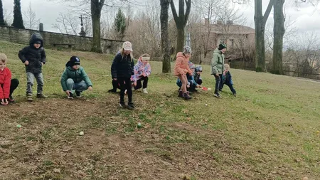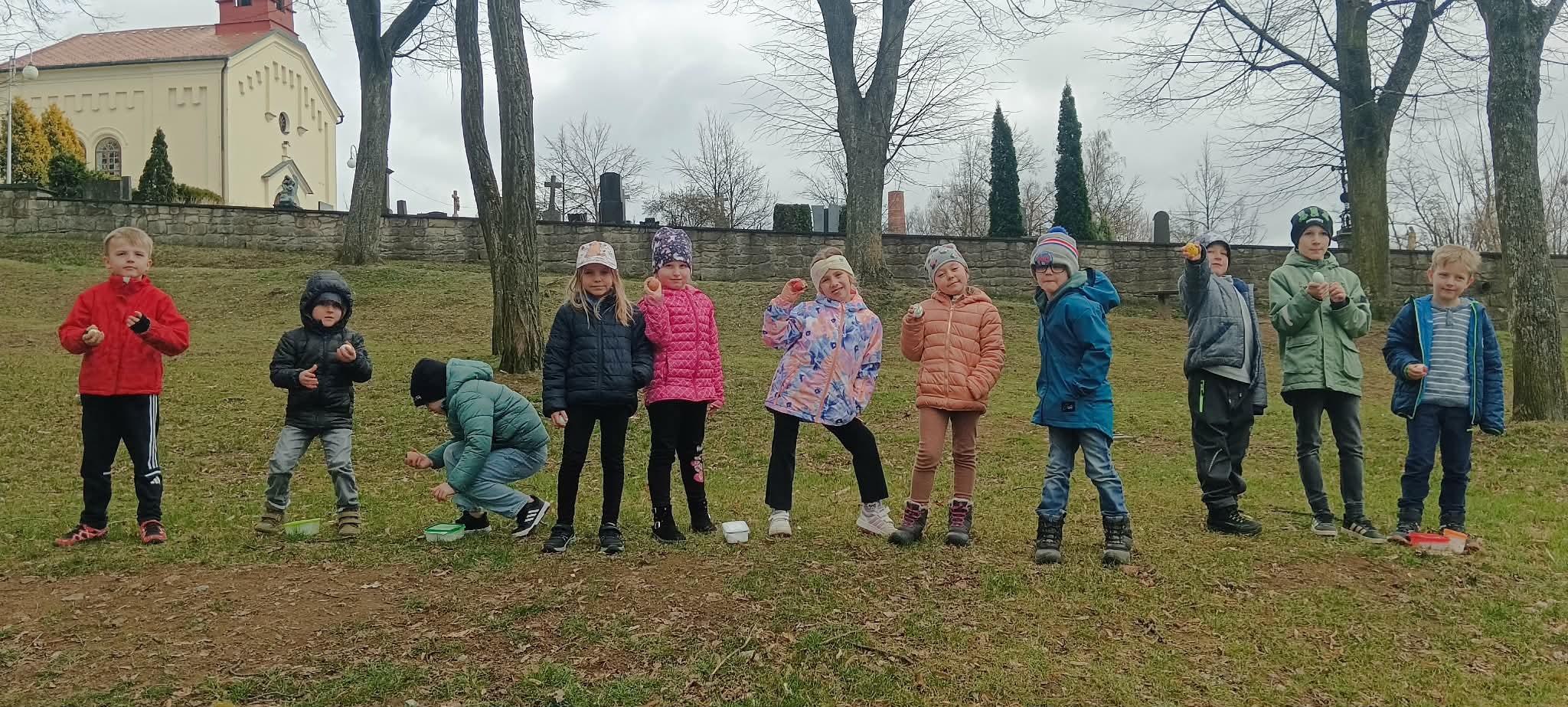 Prvňáčci si během hodiny angličtiny vyzkoušeli tradiční Egg roll. Každý si nejprve ozdobil své vajíčko, aby ho bezpečně poznal, a pak jsme se vydali do parku vedle školy, kde děti soutěžily, komu se vajíčko dokutálí nejdál.