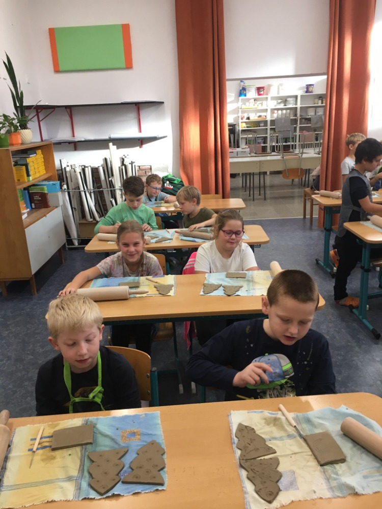 Poté děti zavítaly do keramické dílny, kde si vyzkoušely práci s hlínou a pod vedením zkušené paní vychovatelky Wichové vlastnoručně vyráběly vánoční svícen. ![]()