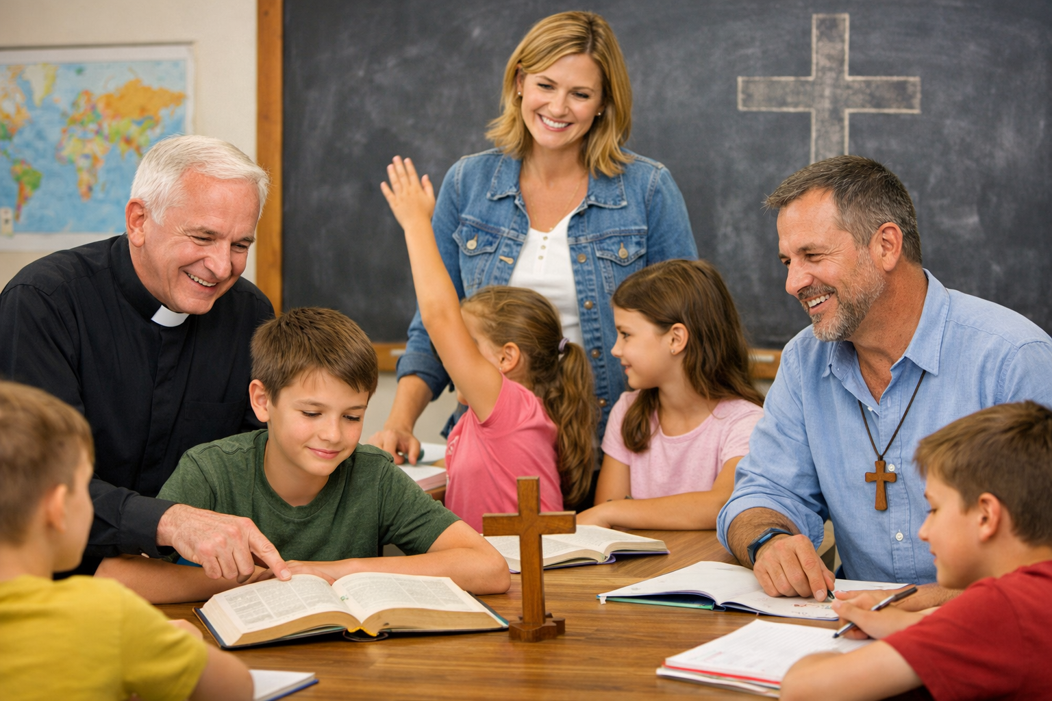 Žáci prvního i druheho stupně zozděleni do několika věkovýc skupin jsou vyučování pod vedením vedeni zkušených pedagogů, zástupců cizkve i oosobami z řad křestansky smýšlejících občanů..