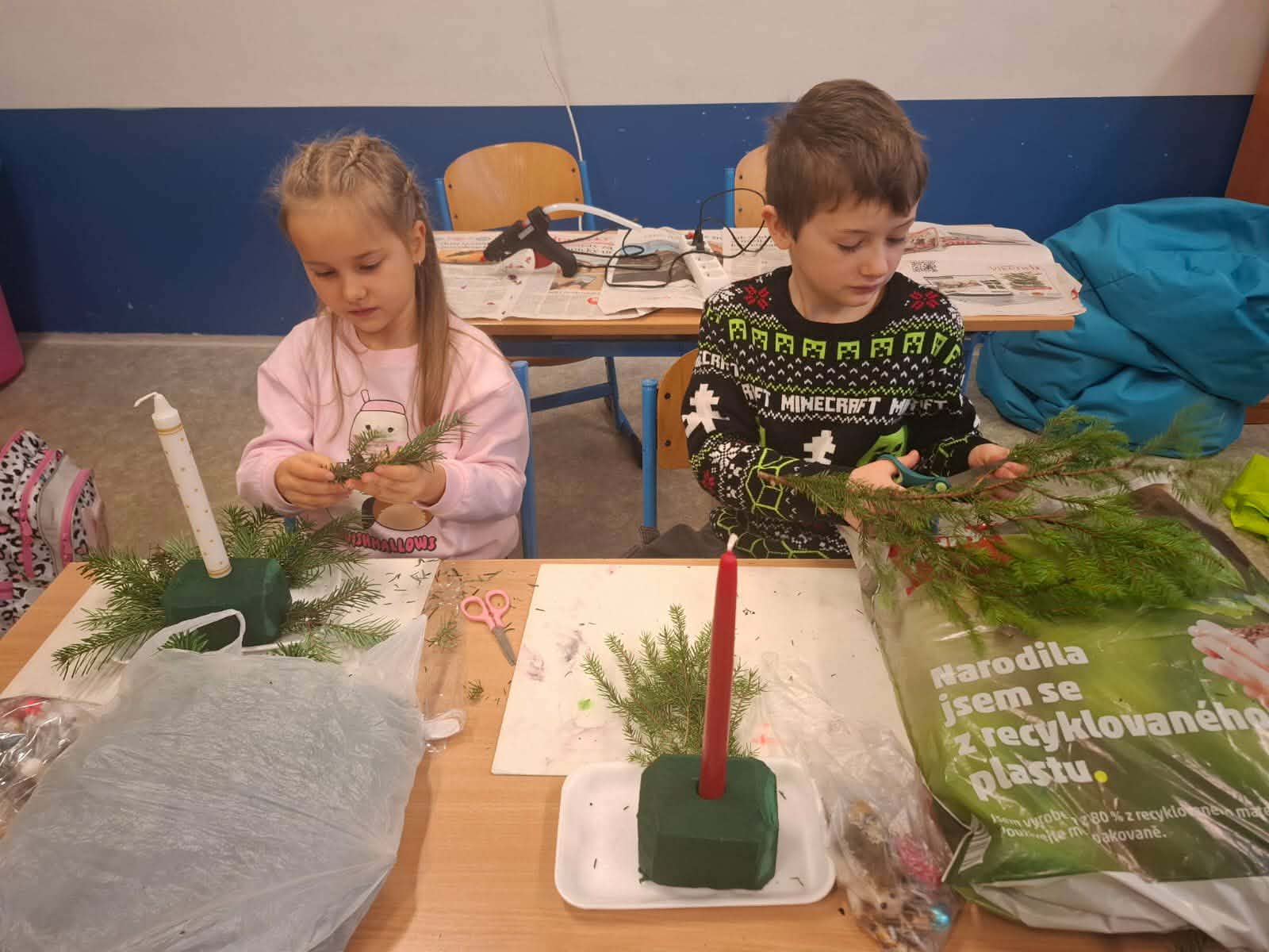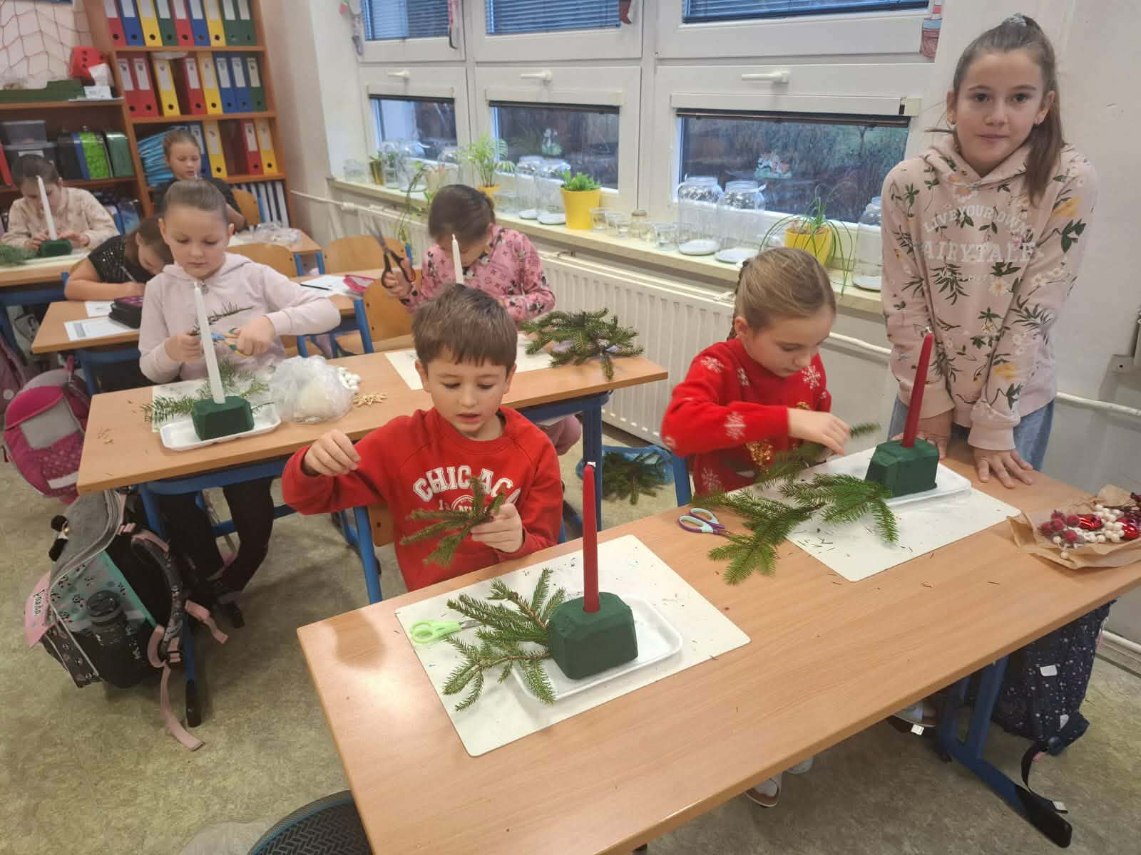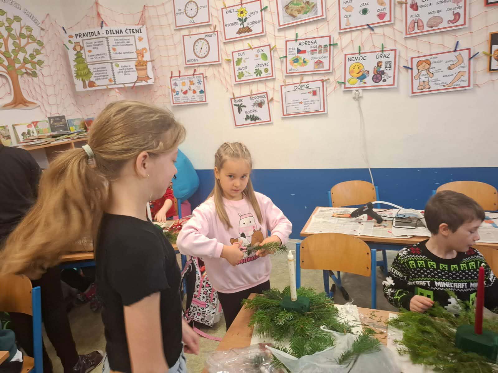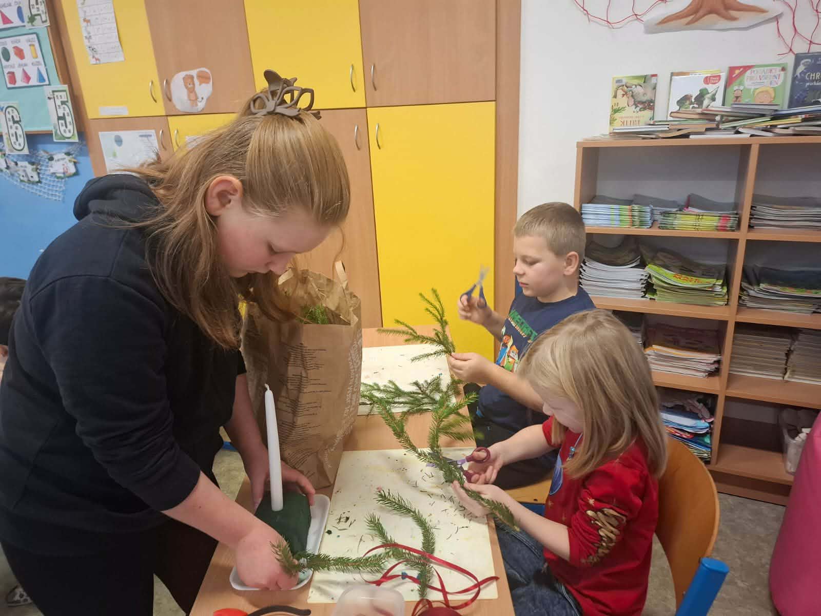 V minulém týdnu proběhla ještě jedna spolupráce mezi menšími a většími dětmi. Tentokrát tedy 2.A a 5.A. I v tomto případě páťáci pomáhali druhákům vyrábět krásné vánoční dekorace.