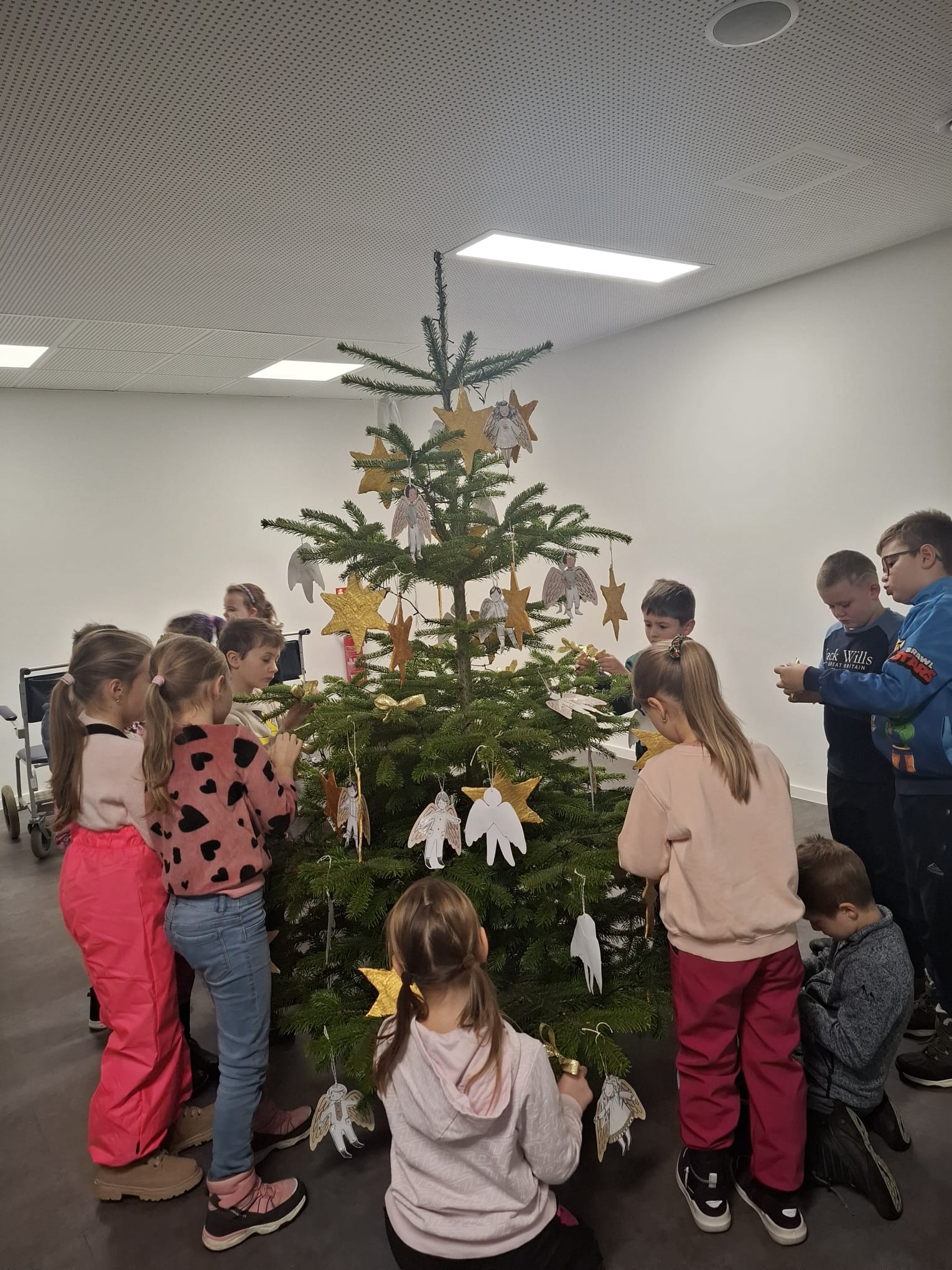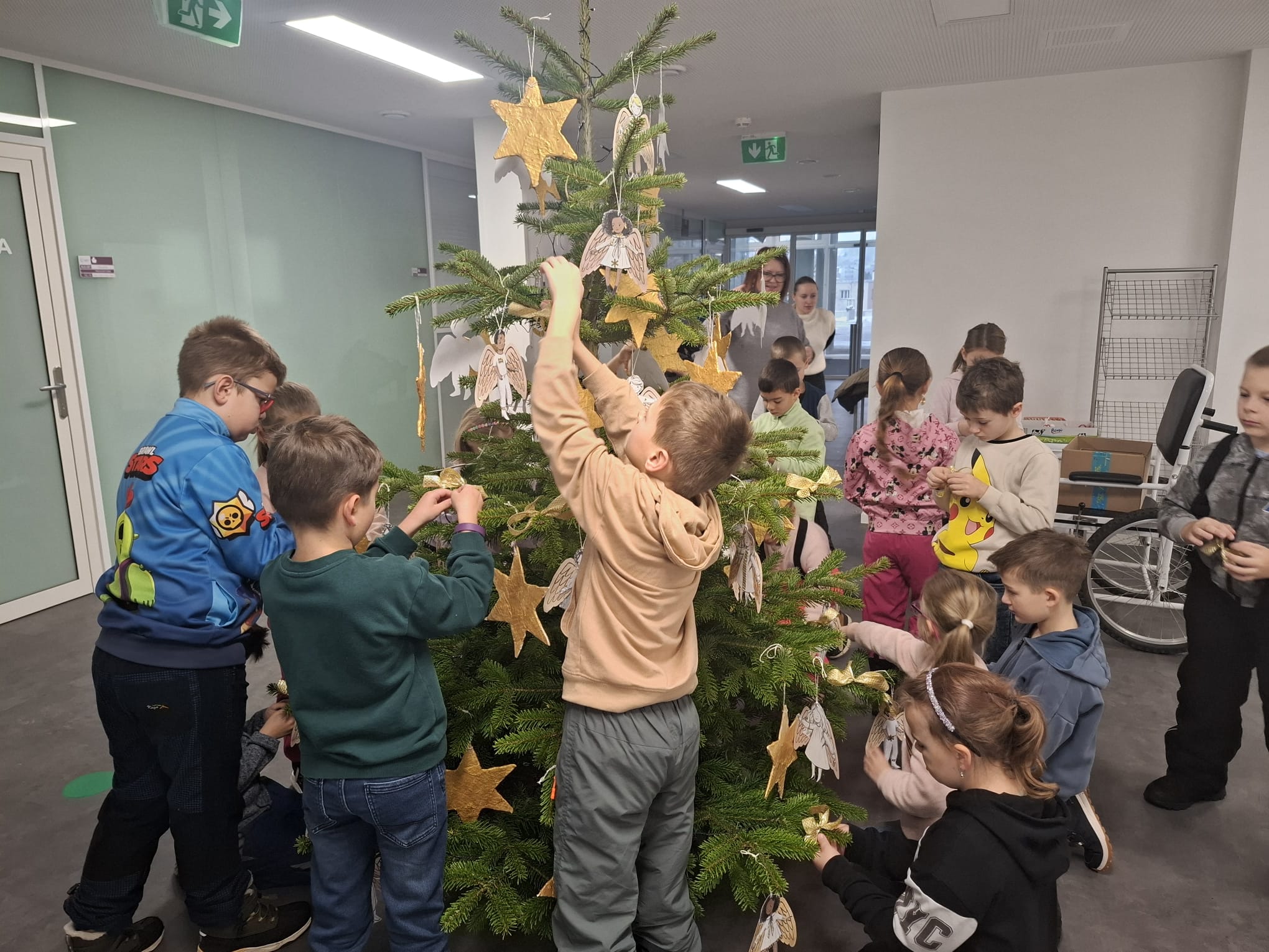 Žáci 2.A, 2.B, 3.B a 4.B spolu s družinou paní učitelky Wichové vyrobili krásné vánoční ozdoby a společně ozdobili nemocniční stromky.